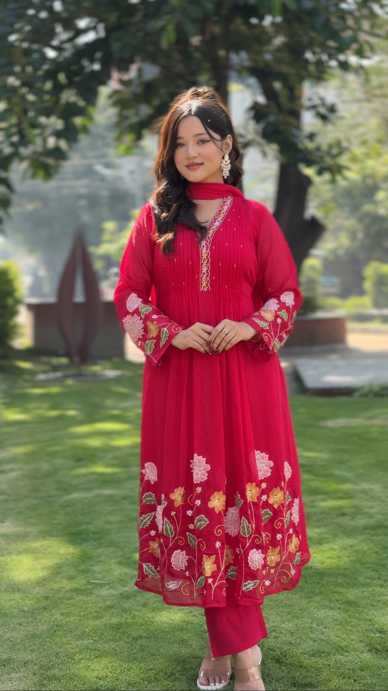 Matching churidar pants and dupatta included