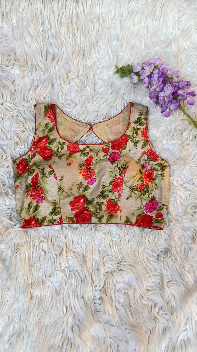 Designed with tailored paneling for a flattering shape, this blouse pairs beautifully with sarees, lehengas, or skirts—making it perfect for festive occasions, casual celebrations, or daytime functions. Style it effortlessly to elevate your traditional look with graceful floral elegance.