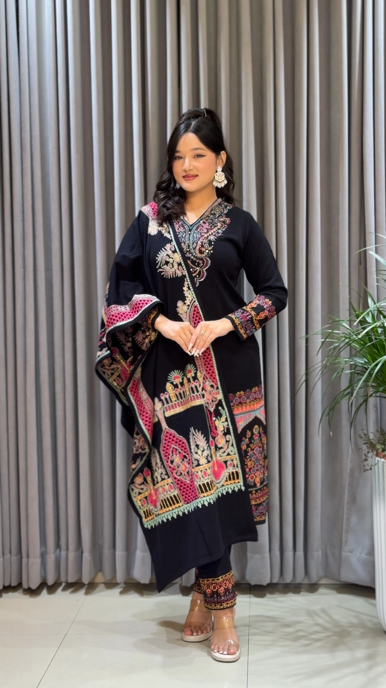 Soft woolen dupatta in matching black