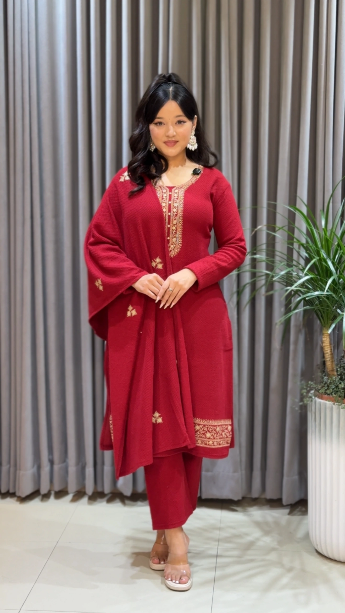 Product Name: Maroon Majesty – Woolen Embroidered Set