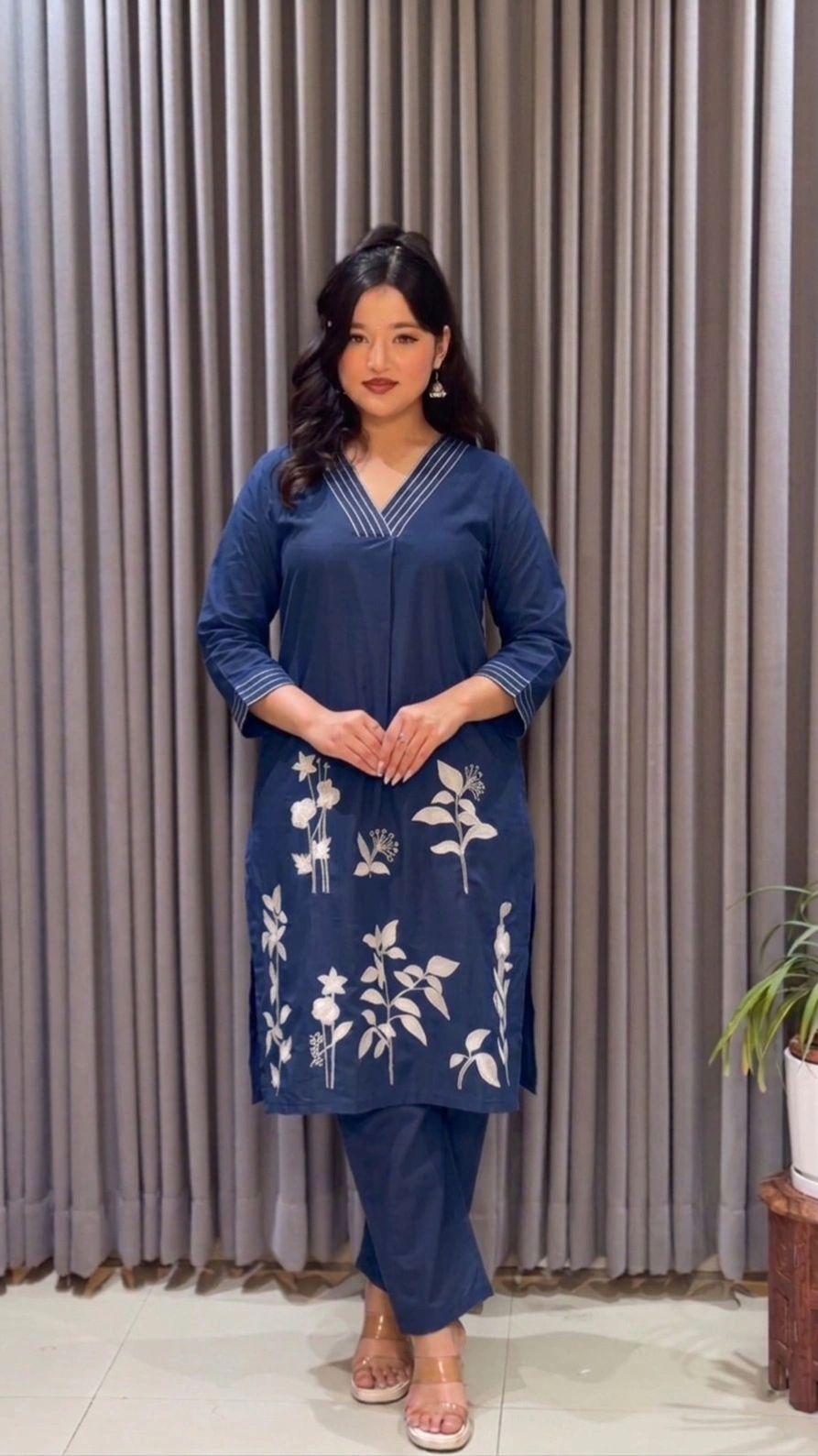 Made from soft and breathable cotton fabric, this co-ords set ensures all-day comfort while keeping your style on point. The straight-cut kurthi with delicate neckline detailing pairs perfectly with matching pants, making it ideal for office wear, casual outings, or everyday elegance.