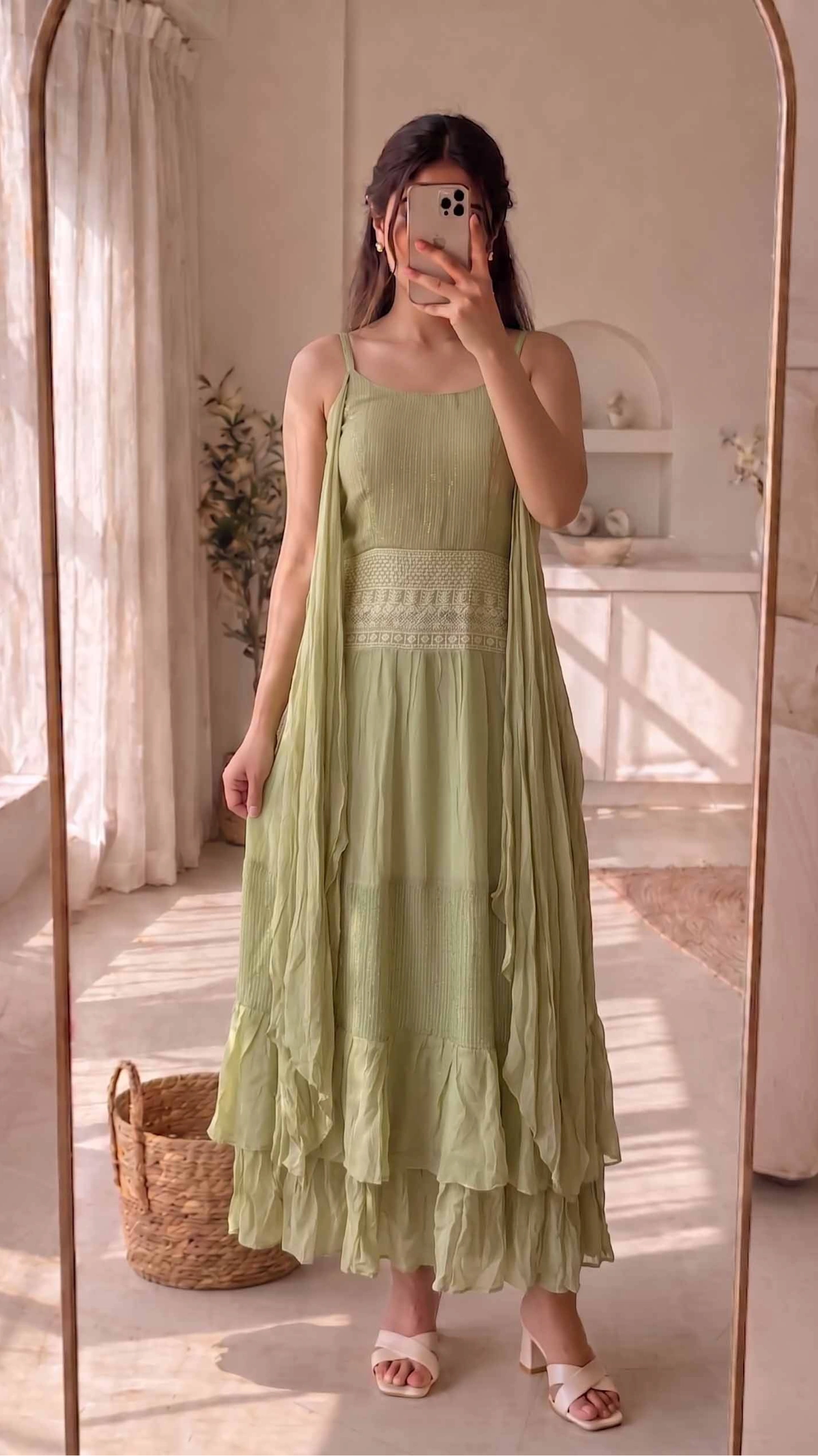 Elevate your everyday elegance with the Olive Grace Layered Kurthi by Shreevastralaya. Designed in a soothing olive green hue, this kurthi features a flowy silhouette with soft layered detailing that adds movement and charm. The delicately textured bodice and cinched waist panel create a flattering shape, while the lightweight fabric ensures all-day comfort. Perfect for casual outings, brunch dates, or festive daytime gatherings, this kurthi blends minimalism with graceful sophistication.