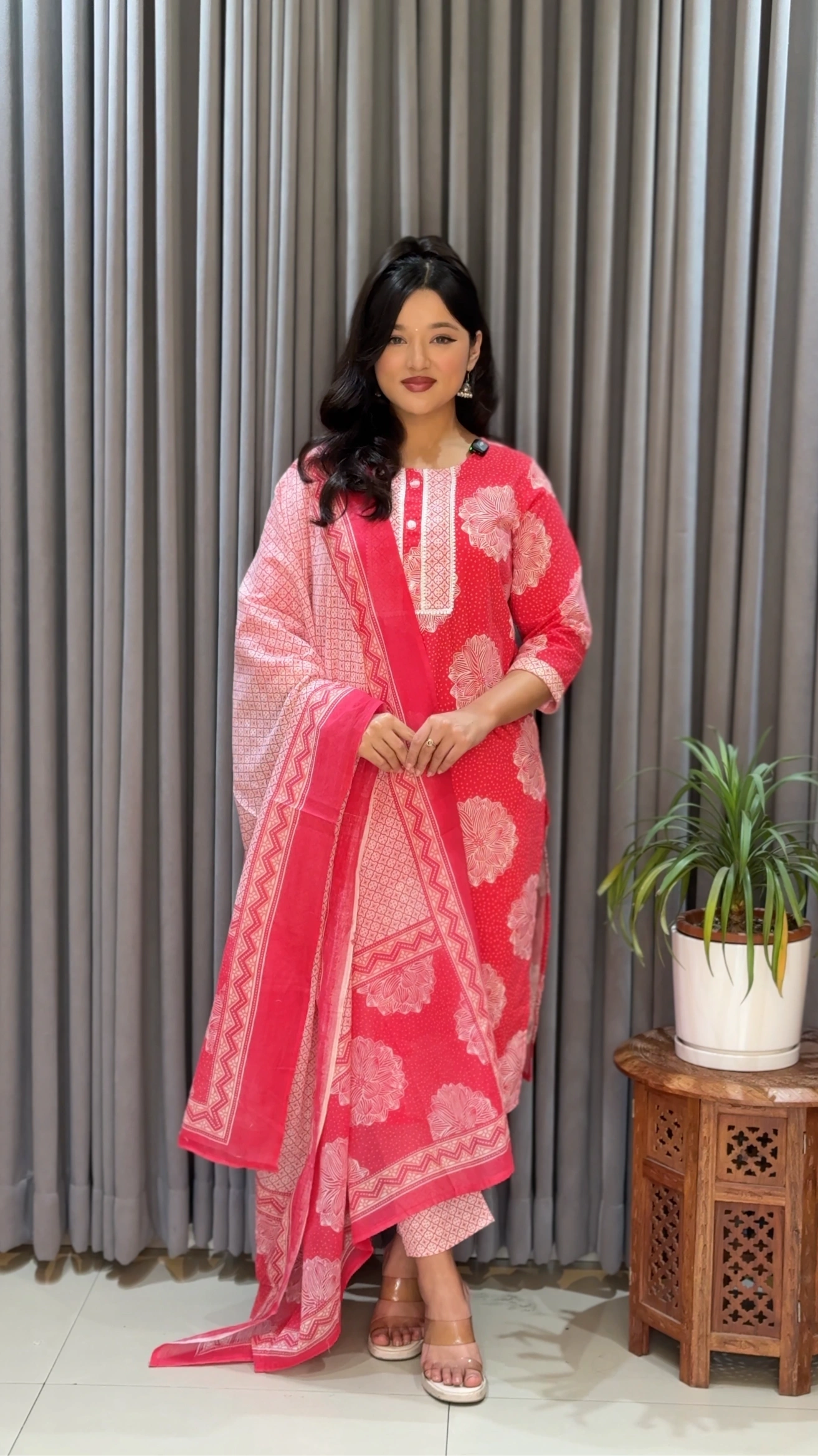 Elevate your everyday ethnic style with the elegant Pink Blossom Kurthi Set from Shreevastralaya, a Nepal-based fashion brand known for blending comfort with timeless design.