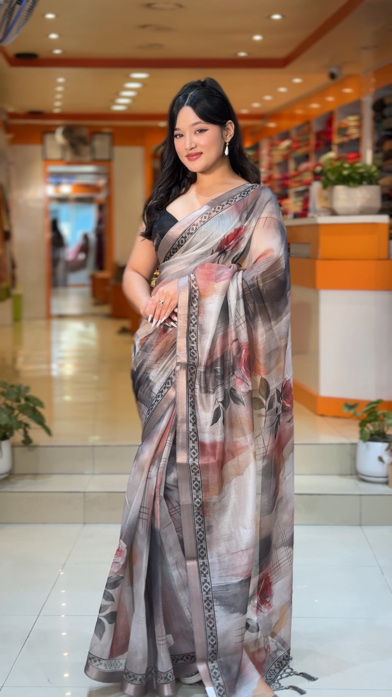 With its fresh color harmony, airy drape, and painterly floral motifs, this linen saree is perfect for women who love understated elegance paired with everyday comfort.
