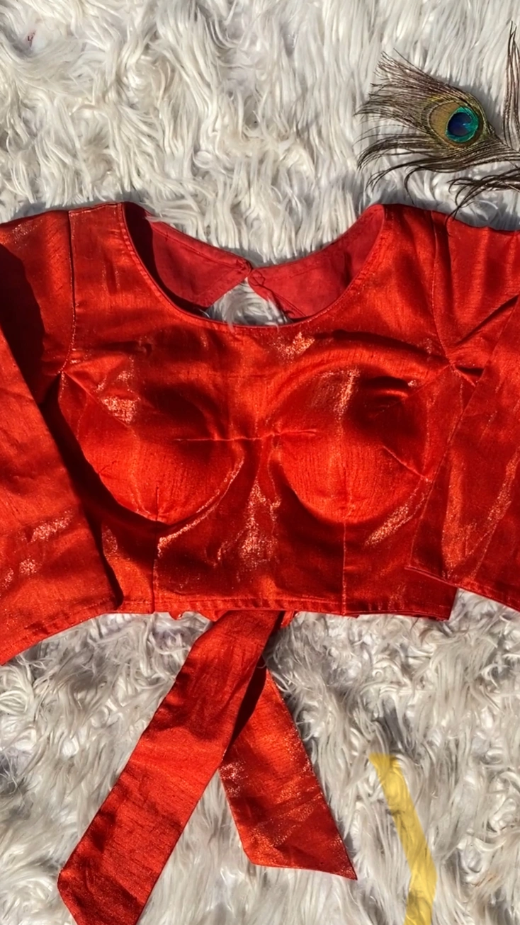A timeless red plain blouse enhanced with a graceful bow-tie back design, offering a perfect blend of classic charm and modern elegance. The clean front silhouette keeps it minimal, while the statement bow at the back adds a feminine and stylish touch—ideal for festive and celebratory wear.
