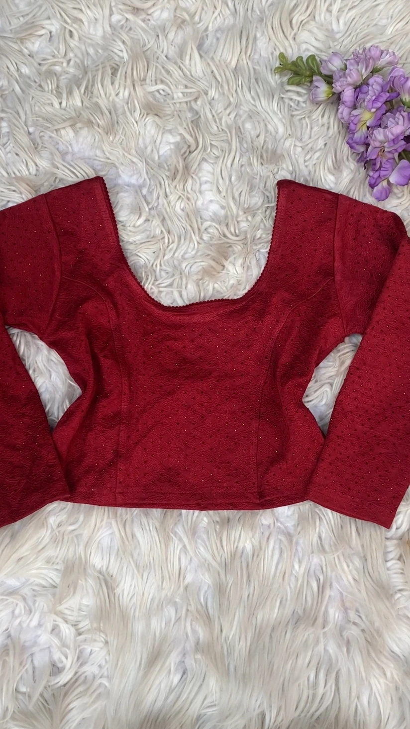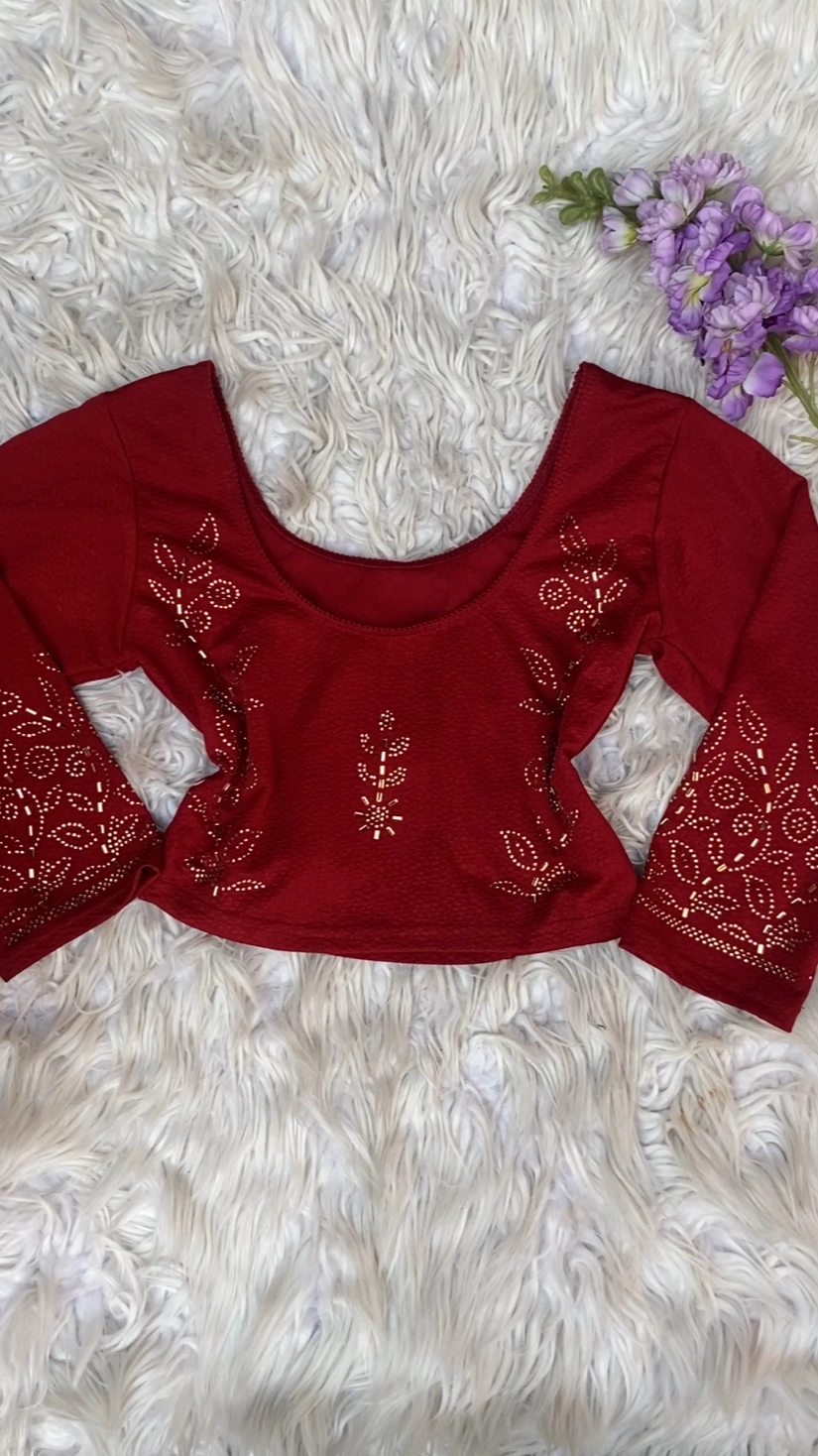 Add a hint of shimmer to your everyday ethnic wear with our Sparkle Stretch Blouse. Crafted from soft, stretchable fabric for a comfortable and flattering fit, this blouse is delicately enhanced with subtle rhinestone embellishments that add just the right touch of elegance without overpowering the design.