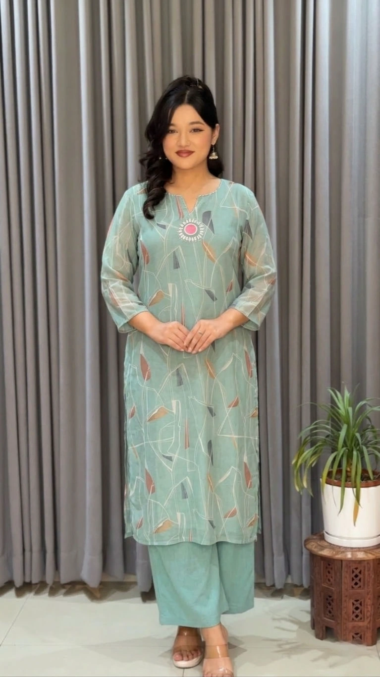 Refresh your wardrobe with this elegant Summer Bloom Co-ord Set from Shreevastralaya. Crafted from premium pure muslin silk, the kurthi offers a soft, breathable feel with delicate floral prints that add a touch of timeless charm. Paired with a comfortable linen pant, this outfit is perfect for effortless everyday style.