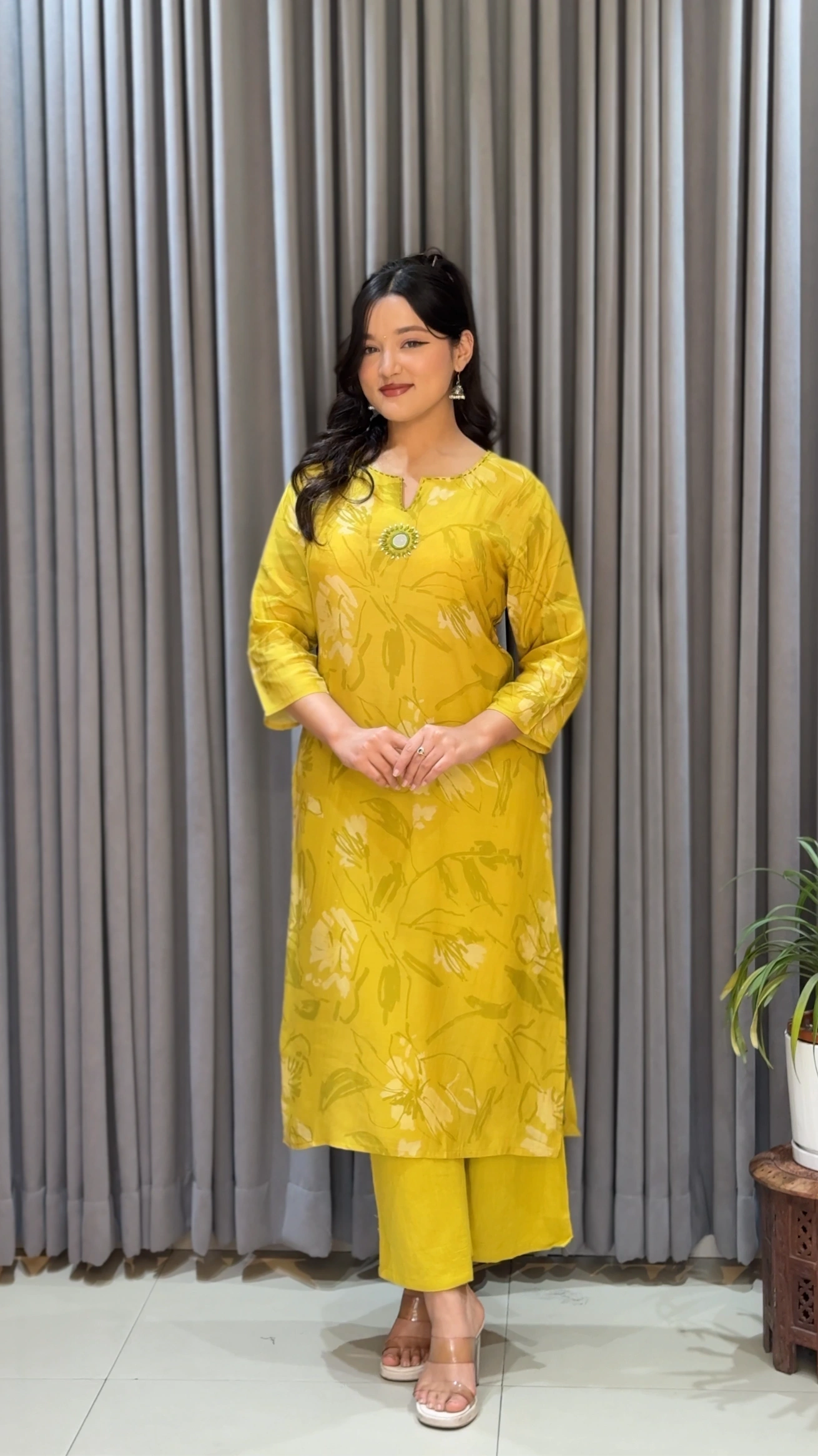 Refresh your wardrobe with this elegant Summer Co-ord Set from Shreevastralaya. Crafted from premium pure muslin silk, the kurthi offers a soft, breathable feel with delicate floral prints that add a touch of timeless charm. Paired with a comfortable linen pant, this outfit is perfect for effortless everyday style.