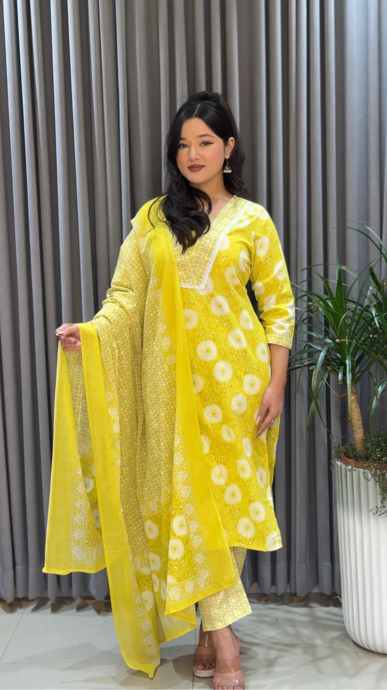 Bright, graceful, and effortlessly elegant — this Yellow kurthi set is crafted from pure cambric cotton, making it lightweight, breathable, and perfect for everyday comfort as well as casual occasions.