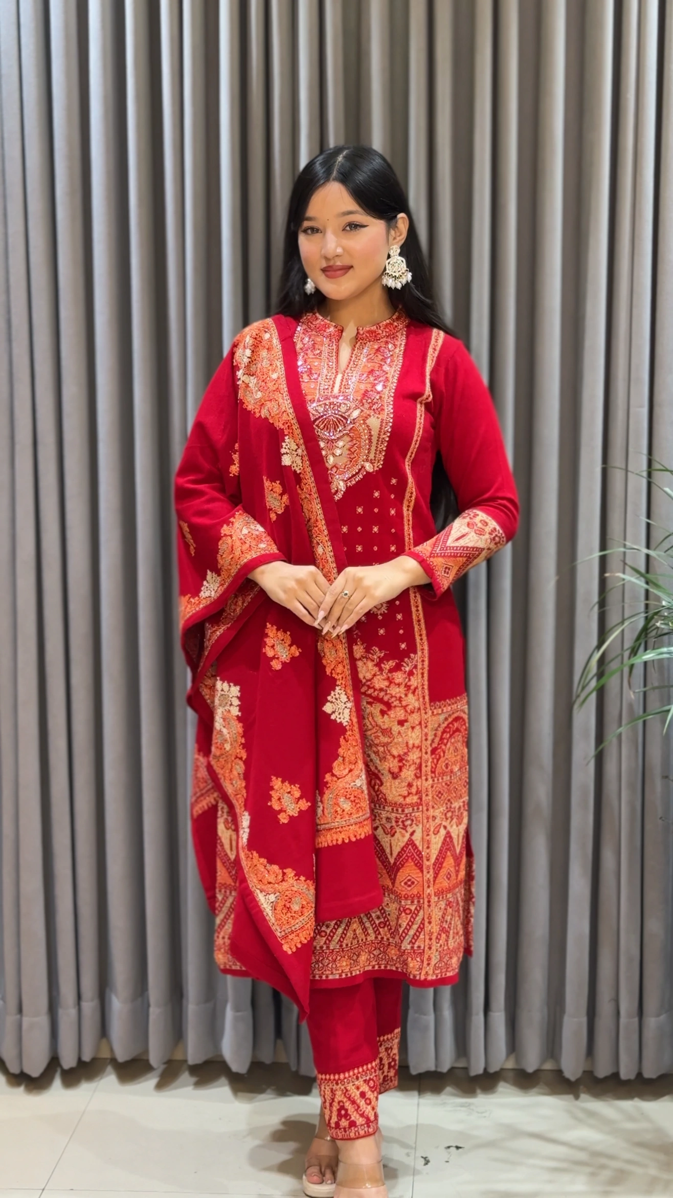 Product Name: Scarlet Grace – Woolen Embroidered Set