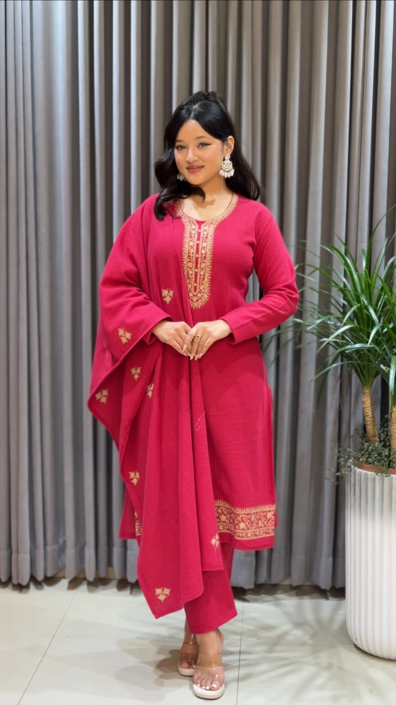 Product Name: Scarlet Grace – Woolen Embroidered Set