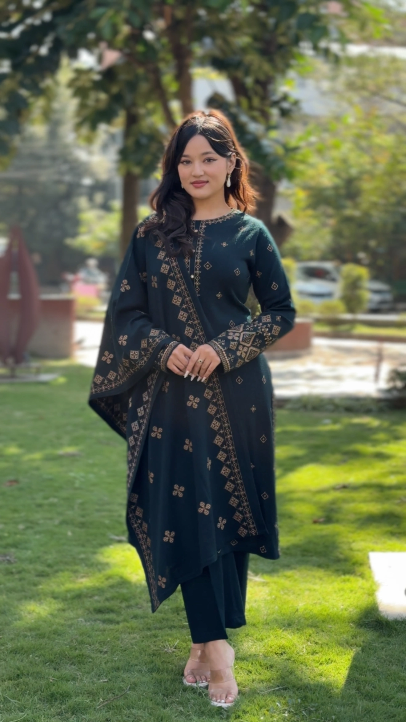 Ideal for festive gatherings, family functions, winter celebrations, and evening outings, this woolen set offers both comfort and royalty in every detail.